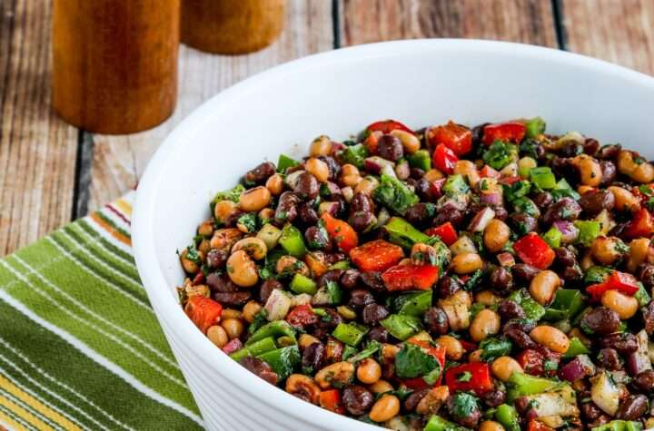 This tasty Black Bean Salad with Black-Eyed Peas also has peppers, red onions, and...