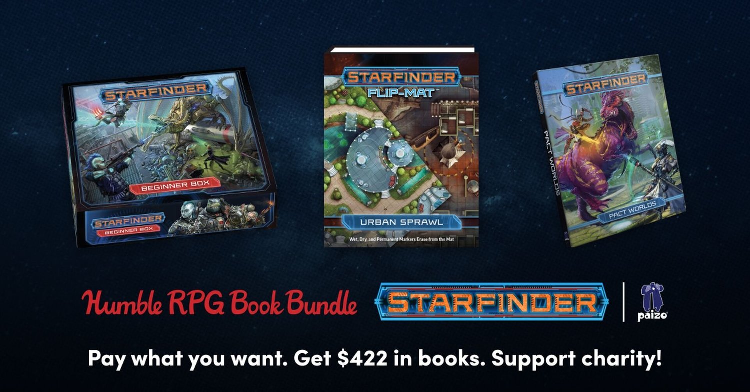 It’s based on Pathfinder, but offers things like the ability to captain your own starship. If you’ve ever wanted to check out Starfinder, this is the perfect time as you can get up to $422 worth of Starfinder products (including two physical items) for only $50 through the new Humble RPG Bundle: Starfinder by Paizo (affiliate link).